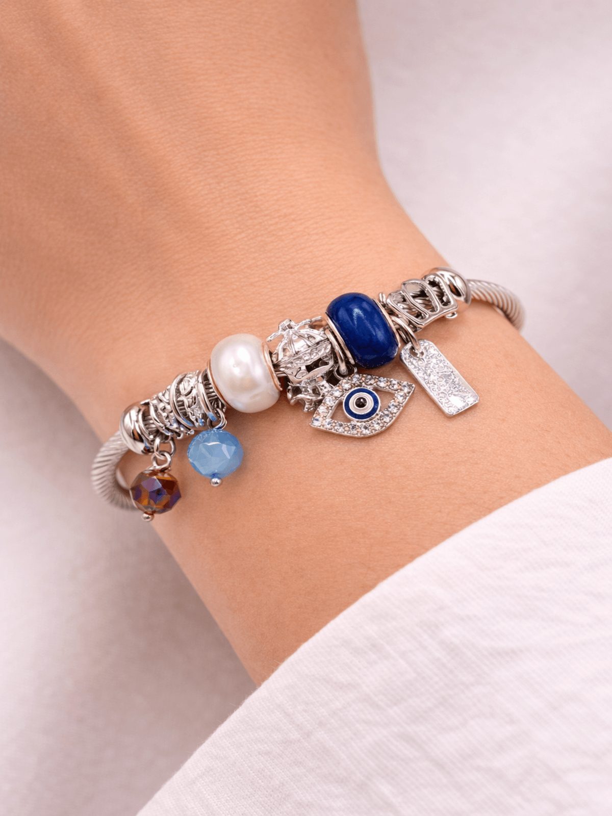Ατσάλινο Βραχιόλι με Charms με Μάτι Μπλε