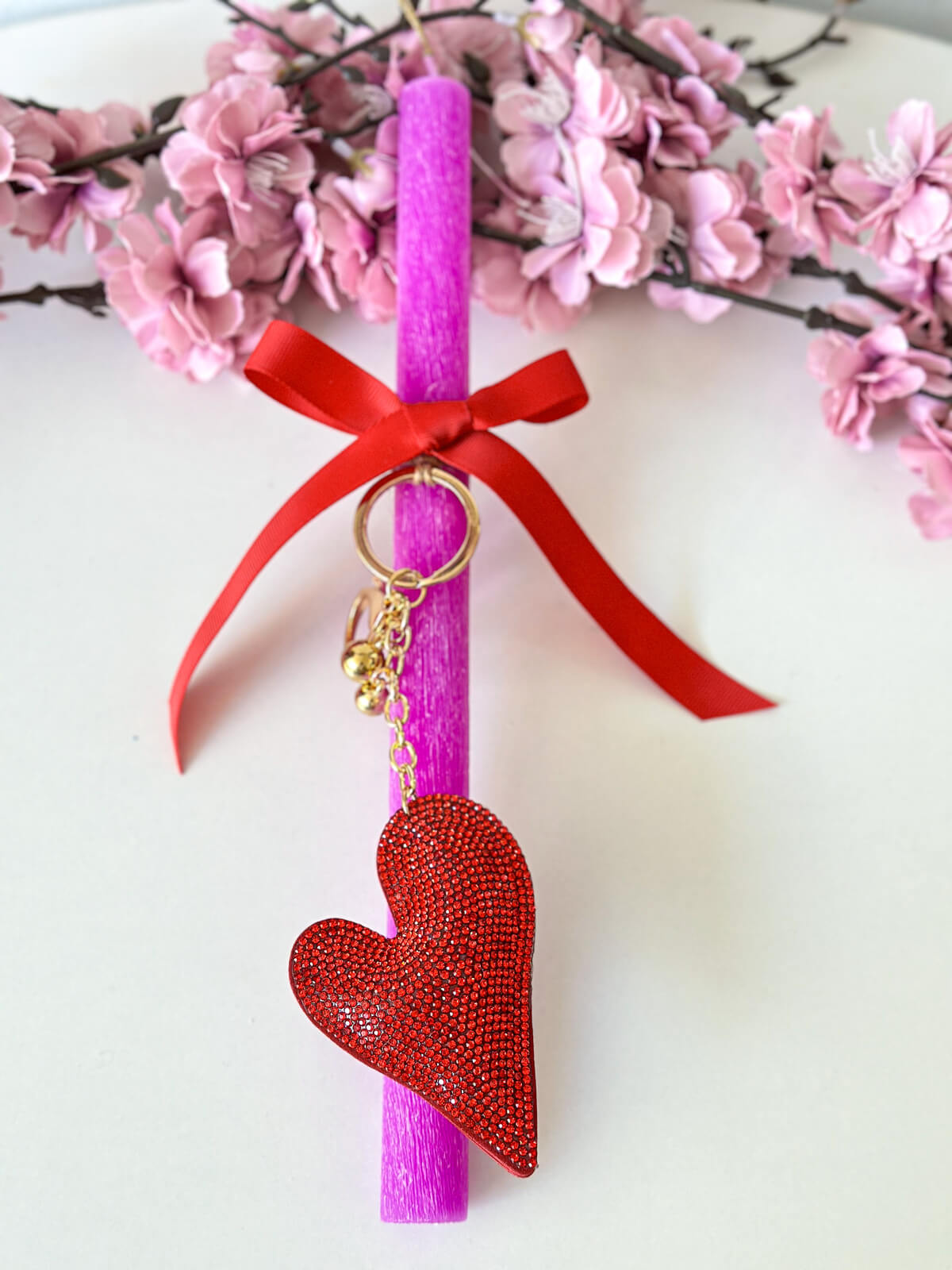 Χειροποίητη Αρωματική Λαμπάδα με Κυλινδρικό Κερί και Μπρελόκ Καρδιά