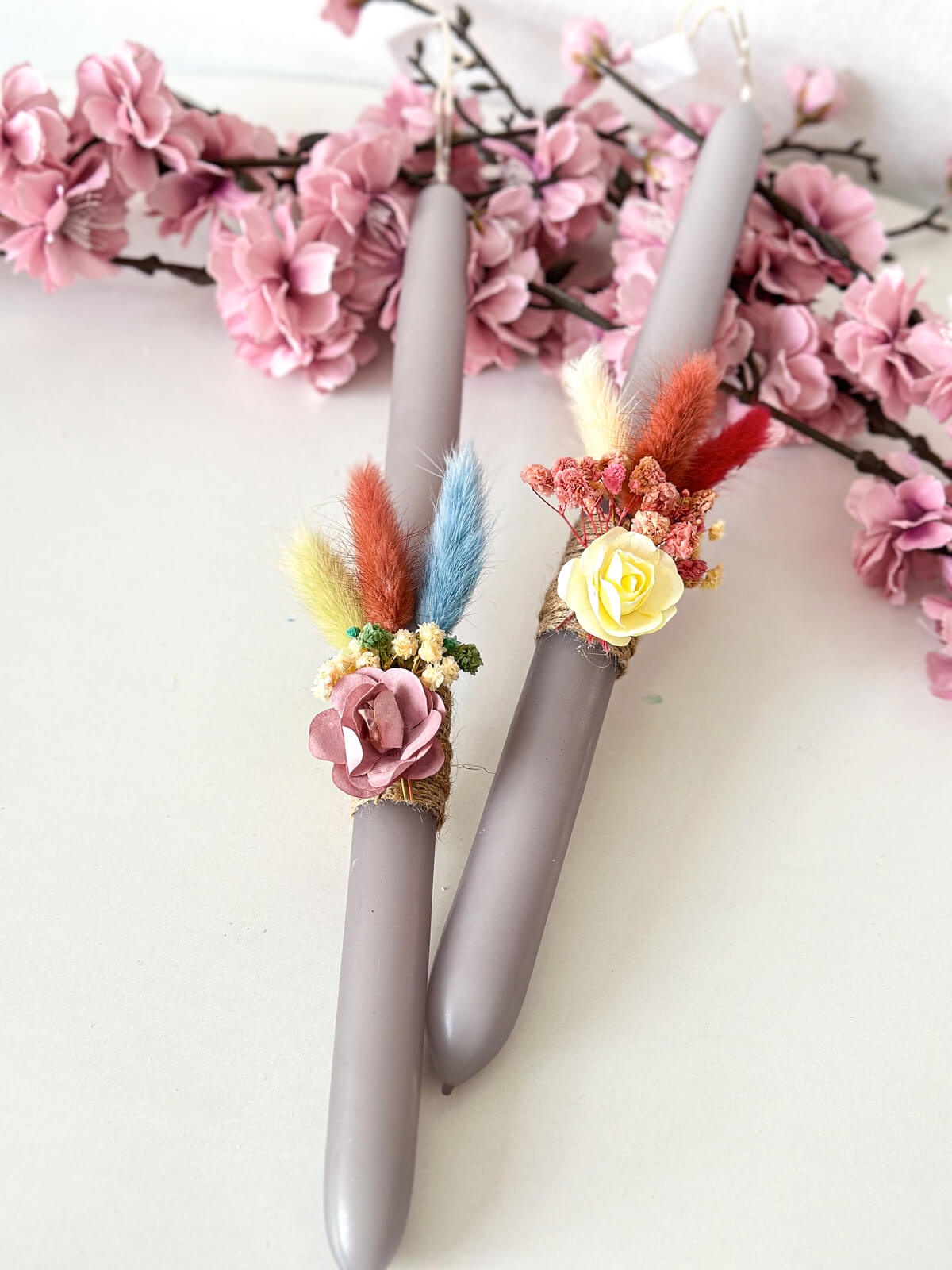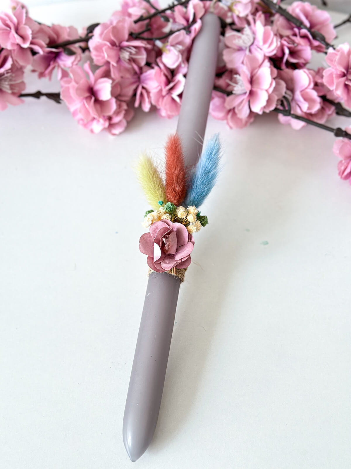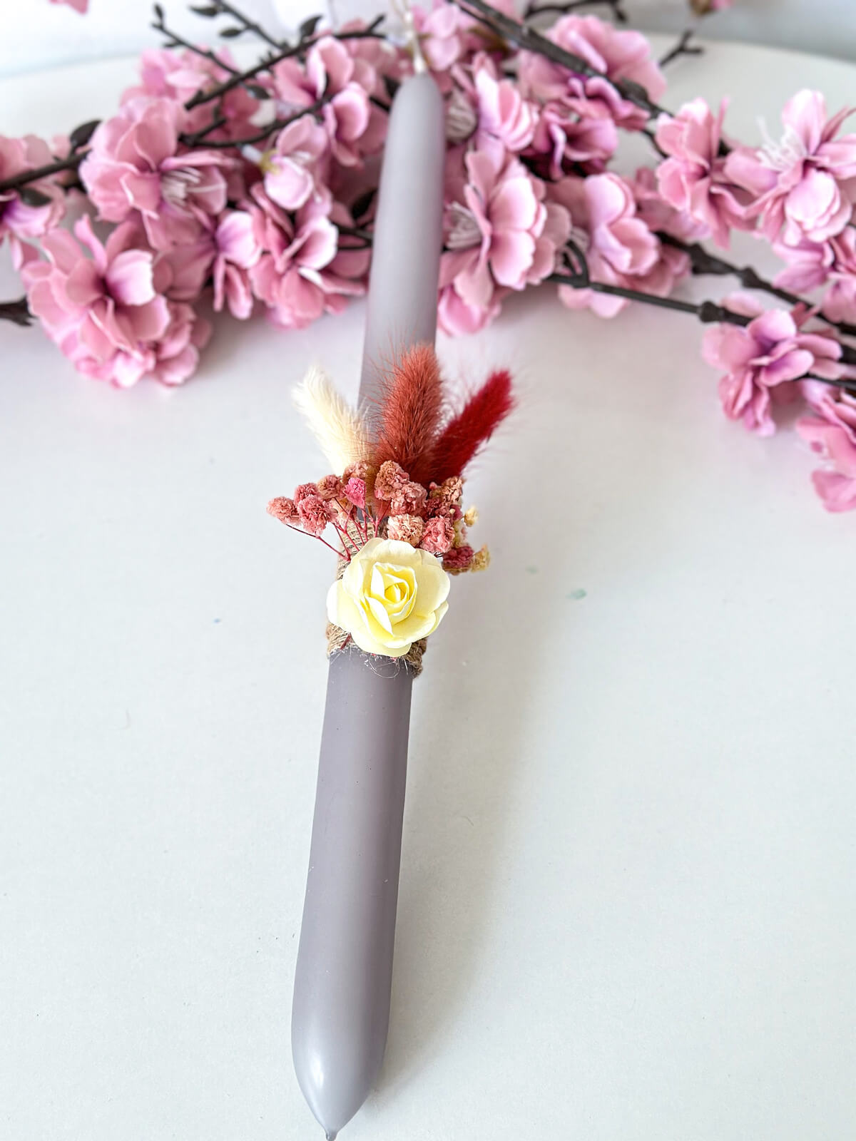 Χειροποίητη Αρωματική Λαμπάδα με Αποξηραμένα Λουλούδια (Γκρι)