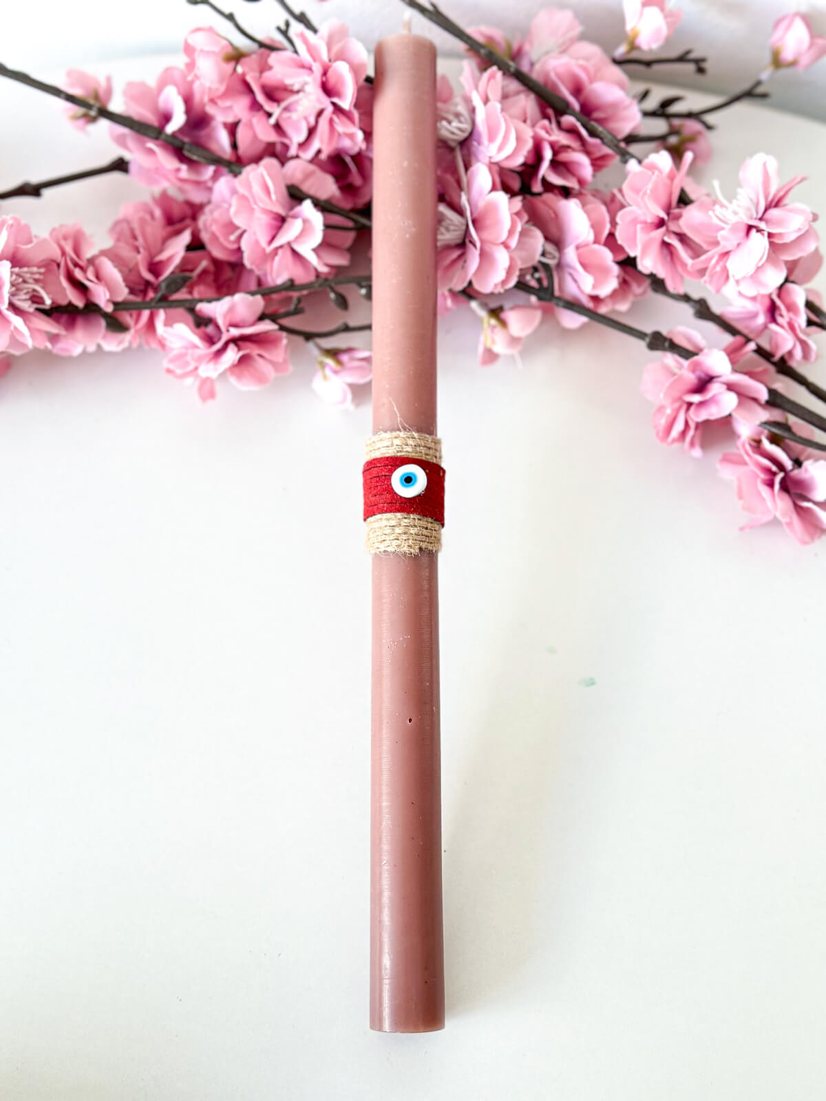Χειροποίητη Αρωματική Λαμπάδα με Κυλινδρικό Κερί και Μάτι (Μπορντό)