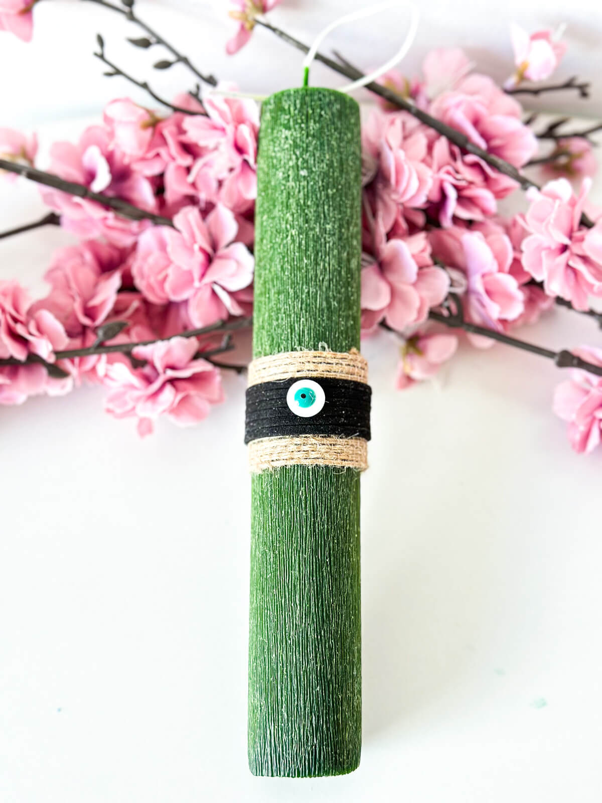 Χειροποίητη Αρωματική Λαμπάδα με Κυλινδρικό Ξυστό Κερί με Μάτι (Πράσινο)